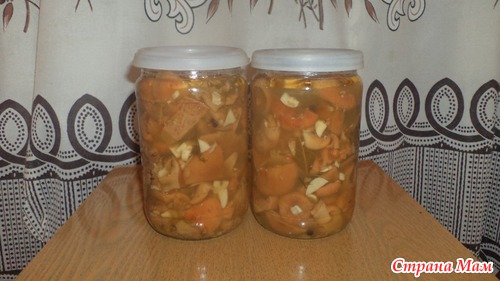 В стерилизованные банки раскладываем горячие грибы вместе с рассолом, когда немного остынут -доливаем рассол и сверху немного растительного масла. Можно закрывать железными и капроновыми крышками, стоят весь год и никаких проблем. Приятного аппетита!!!