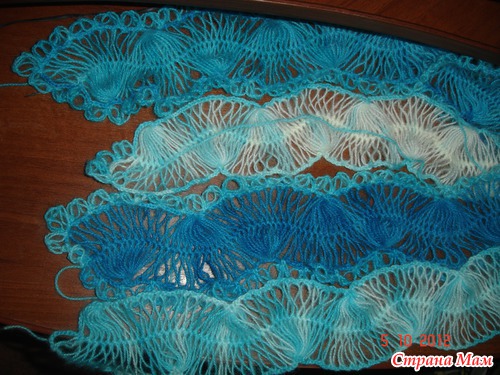 Всем здравствуйте!!! Вторая моя работа на вилке. пряжа ALIZE ANGORA BATIK DESING 100 г 480 м. крючок №1,3. ушел полностью 1 моток и еще чуть-чуть от второго. Связано 4 полосы по 552 петли каждая. полосы обвязаны соломоновыми петлями, одновременно соединяя со второй (уже обвязанной полосой). Размер шарфа 150 см на 45см. Очень теплый оказался и мягкий