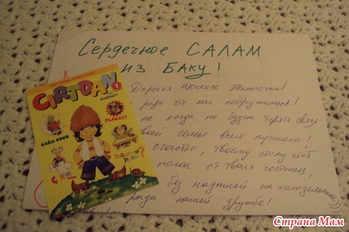 еще получили книжку со сказкой, кучу календариков на азербайджанском(... конфискованы мужем с целью