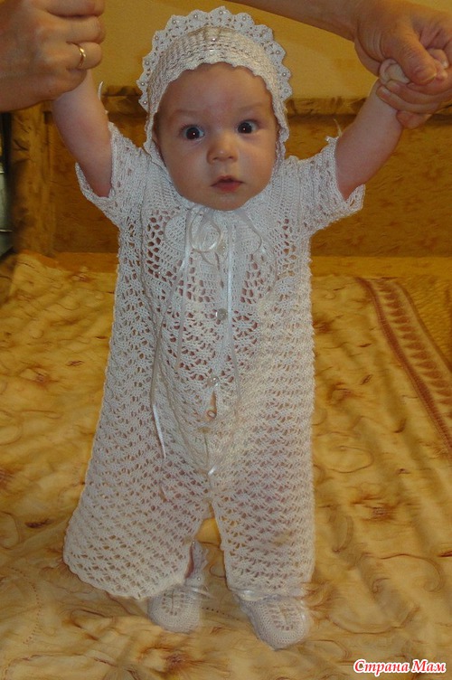 Очень красивый и нежный комплект и малыш - ангелочек . Видно , что связанно с ЛЮБОВЬЮ . У меня единственный вопрос ( видно одна я такая бестолковая ) , что это за 2 кружочка на фото , для чего они ?