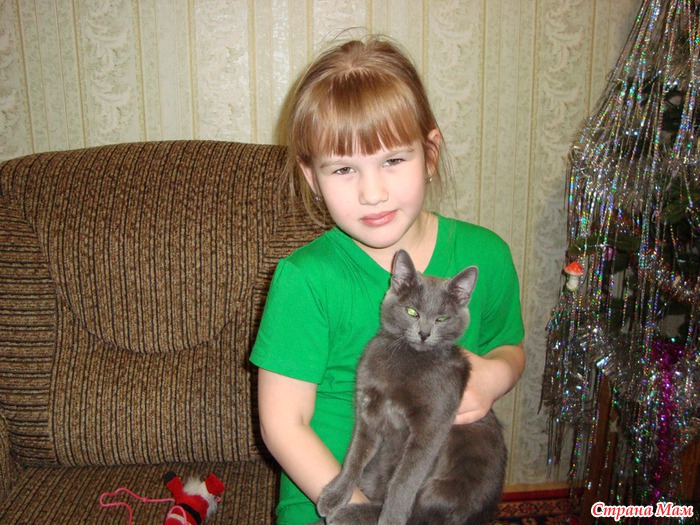 А у нас появилось чудесное существо, кошечка которой 15 января в день рождения нашей дочери исполнится 5 месяцев. А Катюше 6 лет. Так что у нас будет двойной праздник. Кошечка милая, пепельного цвета, ласковая, пришлась всем по душе даже нашему папе, который в общем-то большой любовью к комнатным животным не пылает. Но в этот раз и ему угодили. А счастливее Катеньки наверное на данный момент нет ни кого. А что может быть лучшей наградой для родителей если не счастливые глазки ребенка.