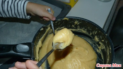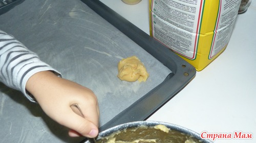 И по ложке аккуратно, выложим мы тесто.