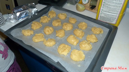 Смазываем противень маслом. Выкладываем эклеры ложками на противень. У меня с порции выходит штук 16-20.