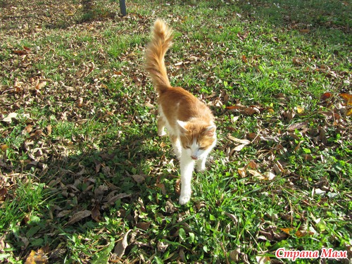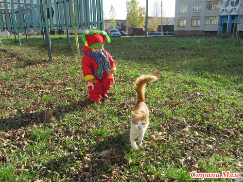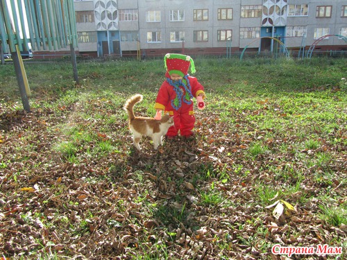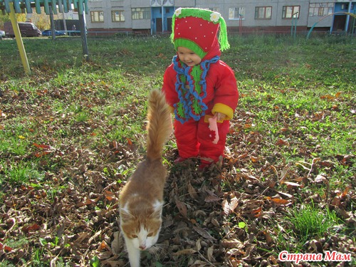 Наконец то мы выгуляли шапку с шарфиком. И успели с кошкой познакомиться.