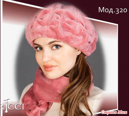 Есть отдельные модели больших размеров (58-59) для специально женщин с круглым лицом: береты (модель 320 и модель 417) и кепки (модель 308), шляпки (модель 428 и модель 429)