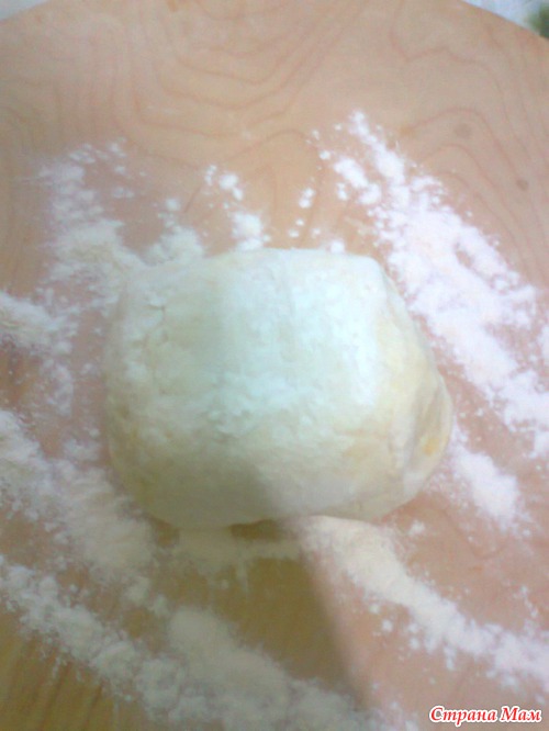 Стол, на котором Вы работаете с тестом, обязательно нужно притрусить мукой. Так тесто не будет липнуть к столу. Когда я разрезала жгут на кусочки, то каждый кусочек-шайбочку я обмакнула обоими срезами в муку, чтобы прикрыть сырой срез и не допустить прилипания к столу или к скалке. И не забудьте, скалку тоже нужно посыпать мукой.
