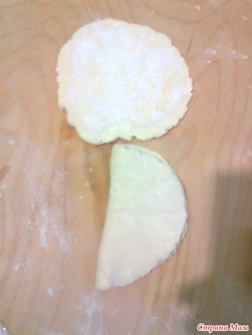 Дальше берем одну "шайбочку" теста и раскатываем ее в кружок с обеих сторон. Вы можете сделать это очень аккуратно,
