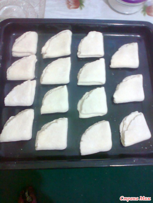 Осталось выложить подготовленные уголки на противень и запечь в духовке 15-20 мин, 200-220 град.