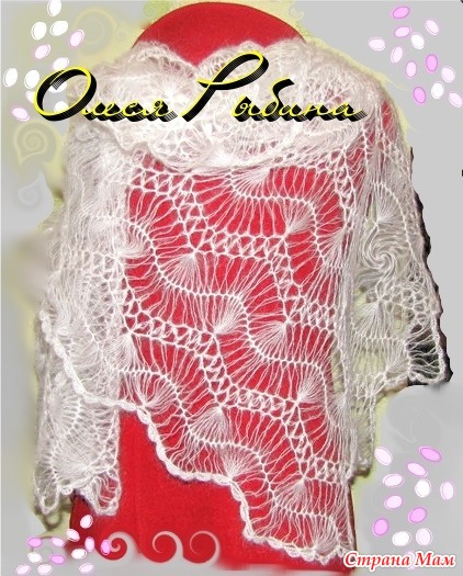 Назвала ВОЗДУШНЫЙ. длина 2м, ширина 54 см. обсуждали вязани тут https://www.stranamam.ru/post/4066145/?page=3#com26276808. очень удобный МК. Использовала нитки КИД-МОХЕР от ALIZE 25г 250 м,68% кид мохер,32% полиамид. вес 65 г, ушло 2,5 мотка. связан из 5 полос по 680 петель каждая. полоса собрана в ракушки по 10 петель(на схеме нарисовано 12), соединение соломоновыми петлями. обвязка на ваше усмотрение. осталась не совсем довольна нитками-"лезут"