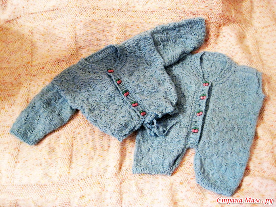 Успела до роддома связать еще Костюмчик на лето. Маме сказала, что сейчас довяжу и завтра пойдем ложиться, так и сделала