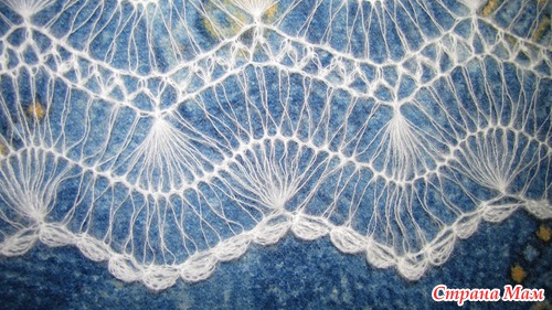 Смотрите, ну, ооочень воздушный получился! поэтому и назвала я его так же-ВОЗДУШНЫЙ. обсуждали тут https://www.stranamam.ru/post/4066145/?page=3#com26276808 размеры 2м на 54 см. нитки КИД-МОХЕР от ALIZE 25г 250 м,68% кид мохер,32% полиамид. вес 65 г, ушло 2,5 мотка. связан из 5 полос по 680 петель каждая. полоса собрана в ракушки по 10 петель(на схеме нарисовано 12), соединение соломоновыми петлями. ну и обвязка еще. сразу скажу про нитки, осталась не совсем довольна-"лезут" и при вязании нить неравномерная- то голая, то намотано много.