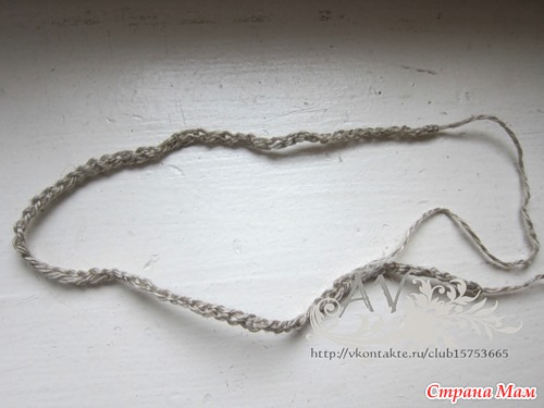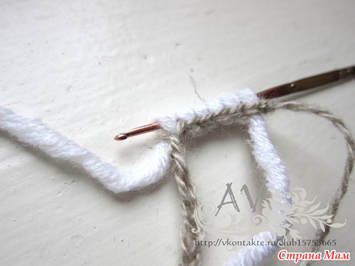 Можно приступать к работе! Для этого набираем крючком с контрастной основному цвету работы нитью цепочку из 78 воздушных петель.