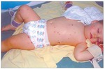 Ее появление означает, что ребенок был слишком туго спеленут или чересчур теп¬ло одет. Потовые железы у детей моложе двух лет функционируют слабо, и в случае перегрева влага скап¬ливается либо под роговым слоем кожи, вызывая появ¬ление пузырьков, либо под дермой (более глубокий слой кожи), приводя к обра¬зованию красных пятен на туловище, плечах, бедрах и ступнях.