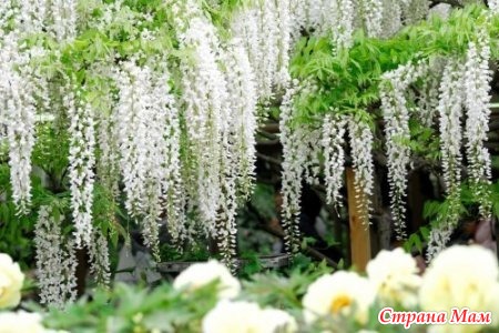 Глициния относится к субтропическим растениям из семейства бобовых с крупными гроздями ароматных цветков. В парке цветов Асигака очень много голубых, белых и розовых глициний, а также желтого ракитника, который, к слову, похож на глицинии. Цветет парк в начале мая. Асигака является одним из лучших мест для любования цветущей глицинией. Все цветы в парке посажены очень плотно и создают очень красивые и необычные композиции.