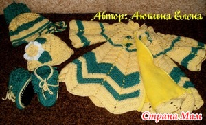 пряжа baby акрил 100% 100 г/300 м. Набирала 80 петель, крючок 3,5. А пользовалась описанием и схемкой нашей страномамочки: https://www.stranamam.ru/photo/3802189/, только вязала все покороче, примеряя на свою кроху.