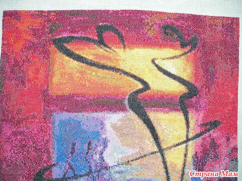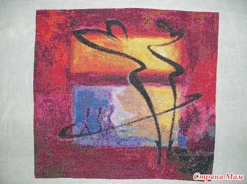 Другая работа "Румба в красном" еще не оформлена. Шила её долго, почти 4 месяца. Размер 200*200, цветов-около 50, точно не помню.