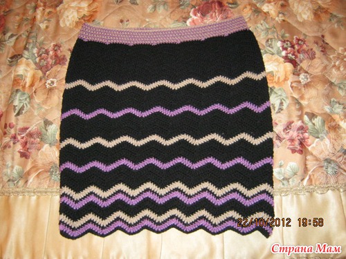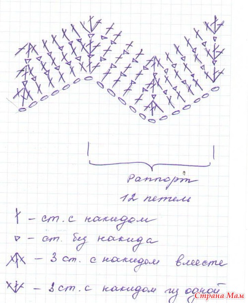 Вязала снизу вверх без убавлений по кругу. Сверху для перехода на ровное вязание в двух последних рядах вместо 3 ст. с накидом из одной петли провязала просто по 1 ст. с накидом. Пояс - ряды из ст. без накида.