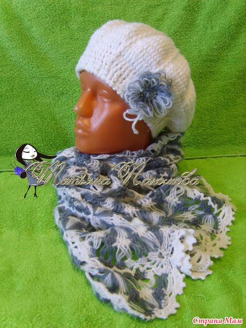 К берету связала шарф на вилке. Шарф вяжем тут,https://www.stranamam.ru/post/4066145/