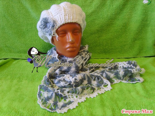Двойной берет и шарф на вилке.