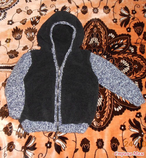 Выставляю а Ваш суд нашу курточку на теплую погоду. Пока я её домучила, у нас похолодало :-) хорошо, что вязала на вырост. Ушло 1.5 моточка Lanoso Puf и остатки шерстяной пряжи, спицы 3,5.