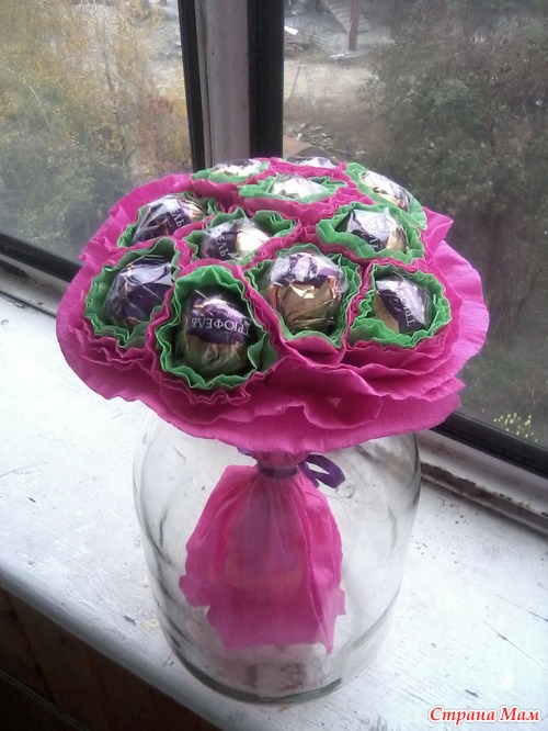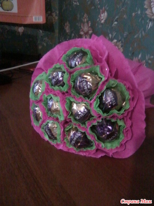 Захотелось мне попробовать сотворить букет из конфет. Все, что делаю первый раз для меня очень страшно , но глаза боятся, а руки делают. Вот выношу на ваше обозрение, что у меня получилось. Конечно не идеально, но я собой рада, что я его сделала. Читать полностью