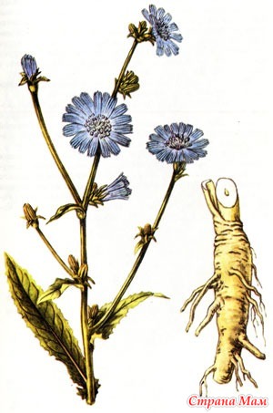 Во многих европейских странах цикорий выращивают специально, для изготовления из него лекарств и напитков. В цикории самой нужной частью является корень, который содержит 40% питательного вещества инулина, сахар, белковые вещества, витамины группы В и аскорбиновую кислоту.
