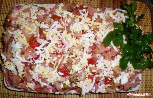 Приготовил салат с красной рыбой : семга и лосось . Не знаю , как на вкус ( гости вынесут вердикт ) , но уже в ъхолодильнике , ждет своего часа , как и плацынды медленно готовятся в духовочке . Читать полностью