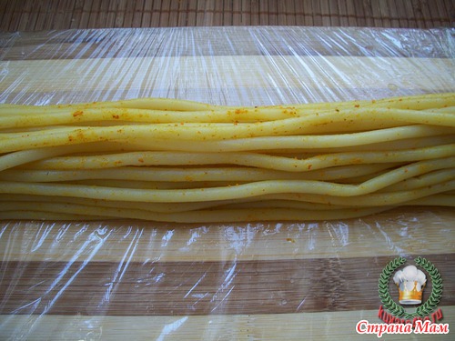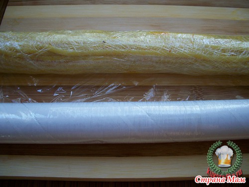Затем уложить их на пленку и скатать в рулет, положить в холодильник.