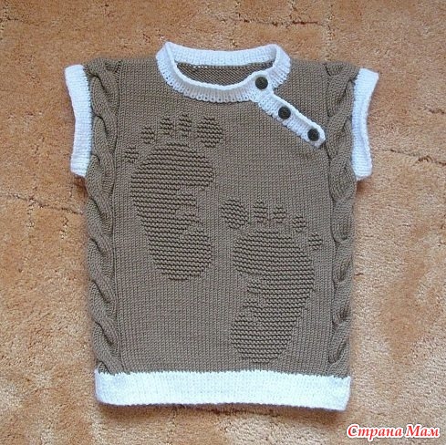 я такую вязала https://www.stranamam.ru/post/2291860/ но сделал маленькую ошибку( как для меня) лицевую сторону надо было вязать по схеме, а вот изнанку надо было вязать изнаночными, тогда ножки бы получились как на оригенали, на всю безрукавку, а я и лицо и изнанку вязала по схеме, вот и получились у меня маленькие ножки