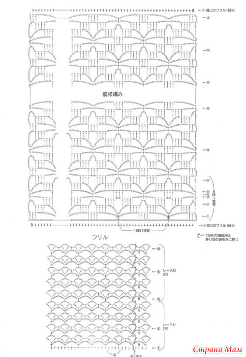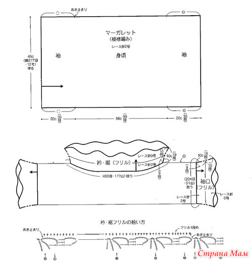 Спасибо. Это направление откуда начинать вязание ....Вяжется полотно , складывается по длине и сшивается с двух краев к середине на длину рукавов .... Схема обвязки внизу ....