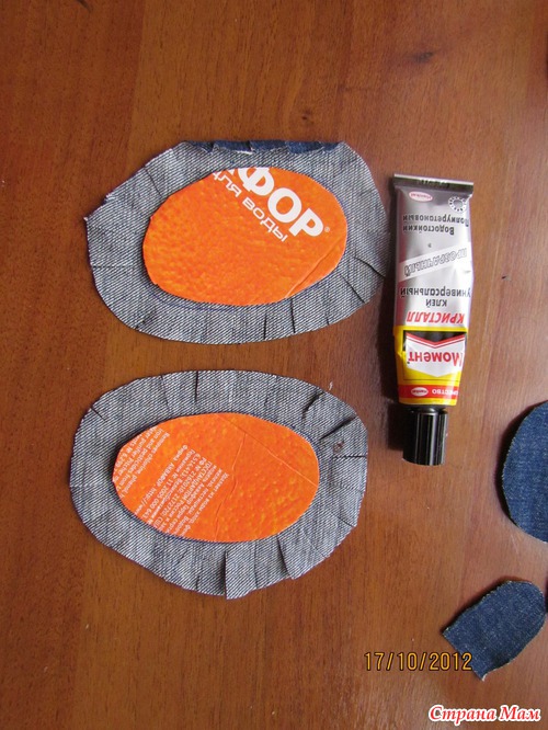 Снова вырезаем картонные овальчики и обклеиваем их тканью