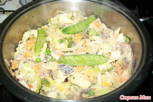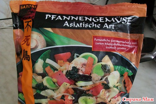 -достаем с морозилки пакет с овощами с азиатскими специями
