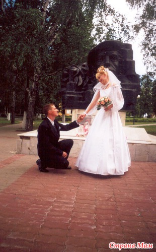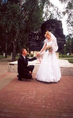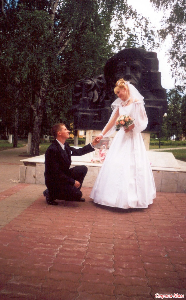 Так вот.... Посидели, потанцевали, караоке пели. Боже! Как он ухаживал... Придя домой, поняла-я пропала. Через 2 недели нашего знакомства, он сделал мне предложение. Я начала его отговаривать, что не надо, мне же только 17 лет (хотя не за горами уже 18), что какой мне замуж, я учиться хочу, хочу красный диплом. На что он мне ответил: я подожду и с учебой помогу. Через 3 месяца, в пятницу 13, меня засватали. Через 6 месяцев - 14 июня - состоялась наша свадьба (а 13 июня, пятница-было 9 месяцев как мы встречались).