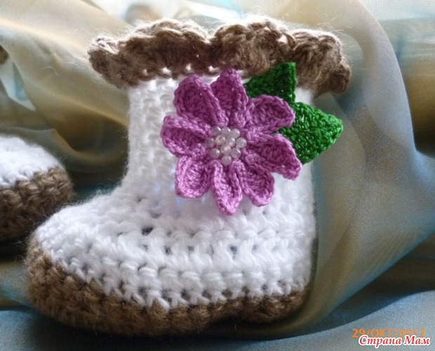 Очень симпатичные угги! Вяжутся очень быстро! Украшение мажно придумать самим))Вот Мк видео http://lifebabysapatinhos.blogspot.com/2012/07/botinhas-em-croche-para-bebe.html Огромное спасибо Валентина2246 за описание на русском!!! Кому интересно смотрите! https://www.stranamam.ru/post/3934214/