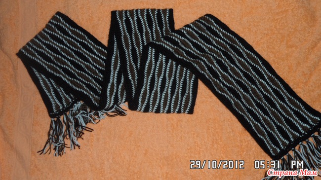 Шапку связала за 4 вечера, шарф за 7 дней.
