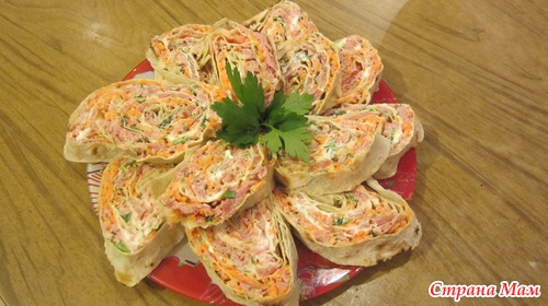 Рулеты из лаваша с корейской морковочкой