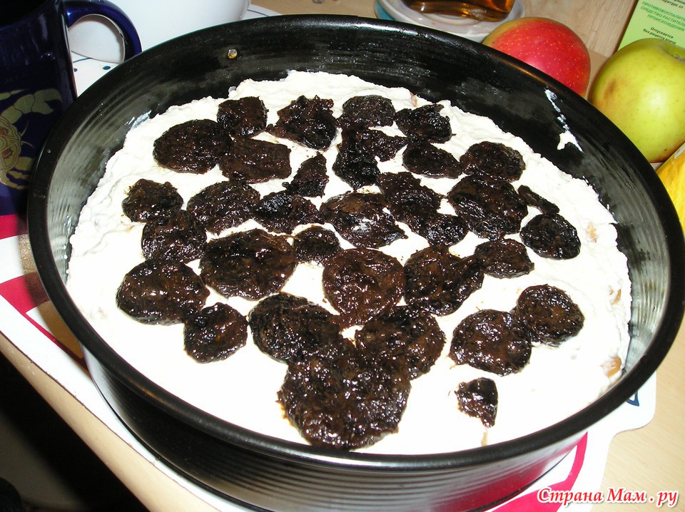 Вторая треть теста - второй слой начинки (чернослив)