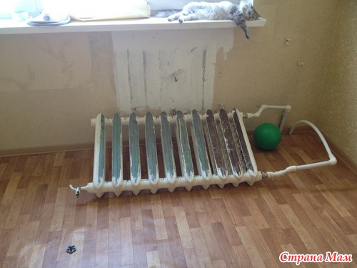 . Хорошо что её не придавило батареей, и трубы новые. Они согнулись, а не сломались.