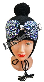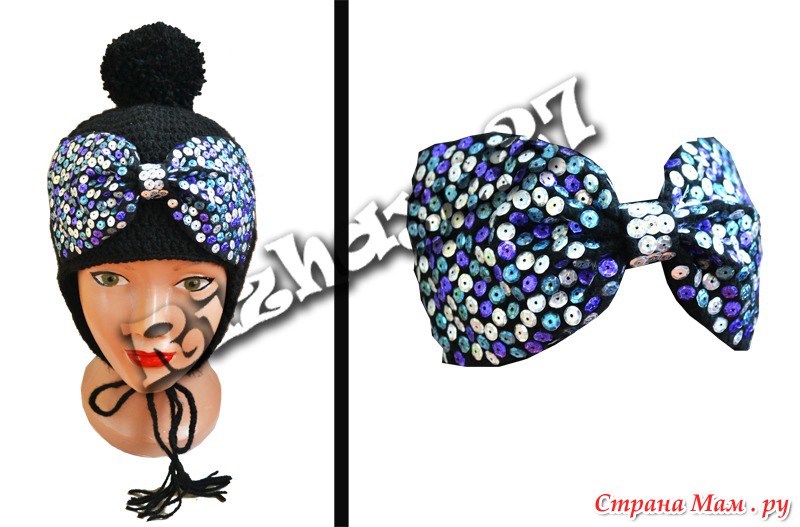 Шапочка с большим бантом, вышитым пайетками