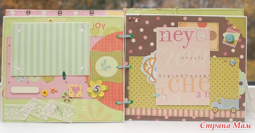 в этот раз я вам покажу альбомсик который был сделан для маленькой девочки Евы. Альбом 22-25, вмещает целых 59 фото 10-15, в мягкой тканевой обложке, скреплен на шнуровке! В альбоме есть помимо большого количества фотографий, есть так же много тегов для памятных записей из жизни малышки, есть место для отпечатка ладошки и пяточки, страничка про беременность, кармашек для УЗИ, бирочек из роддома, страничка про первый день Рождения и несколько пустых страничек для внеплановых мероприятий =)))
