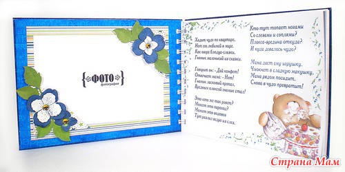 первый разворот: место под фото и стишок про малыша...