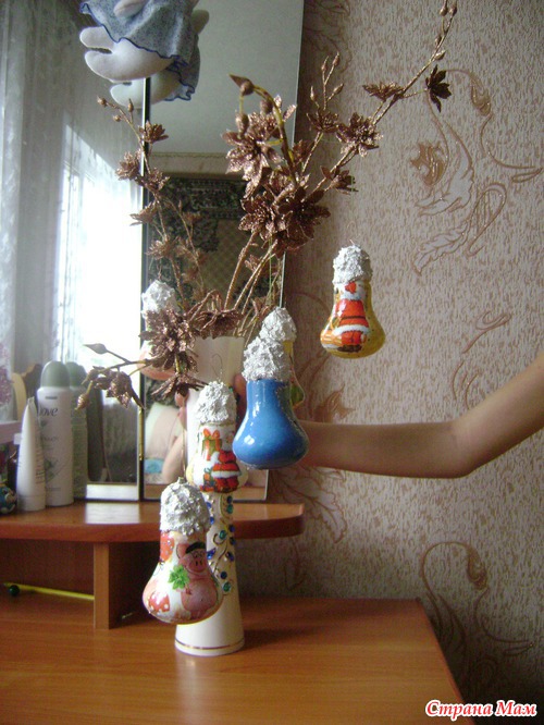 подробный МК здесь http://s30893898787.mirtesen.ru/blog/43280520841/YOlochnyie-igrushki-iz-staryih-lampochek.-Dekupazh.-Master-klass