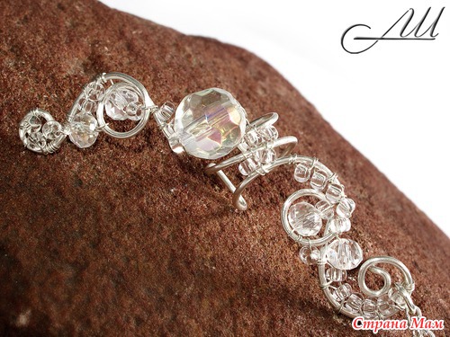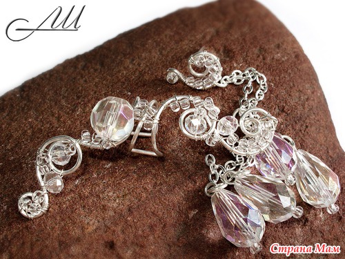 Это уже третий, и, я думаю, последний подобный комплект. По крайней мере, в ближайшее время Материалы: Посеребрённая немецкая проволока, стеклянные чешские бусины, бисер, цепочки Размер: кафф с гвоздиком в прокол - 5 см, подвески - 5 см; сережка - 5 см Читать полностью