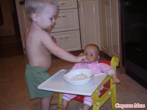 Кормил с удовольствием, даже потом стол и пол тряпочкой вытер, потому что кормил своей кашей