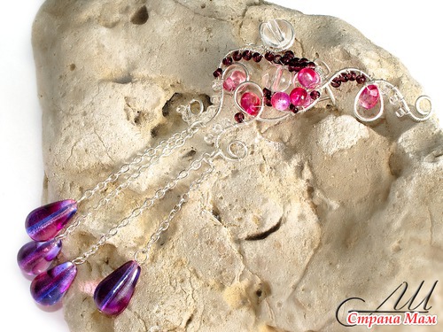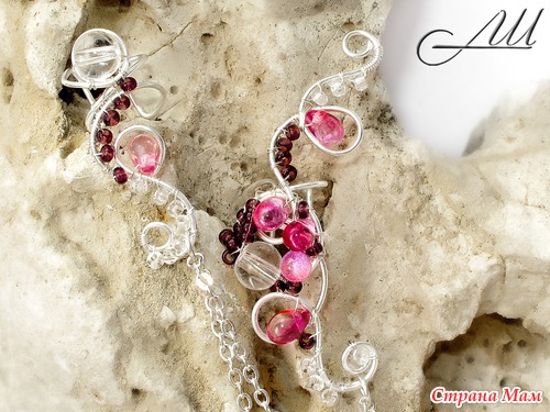 Материалы: Посеребрённая немецкая проволока, стеклянные чешские бусины, бисер, цепочки
