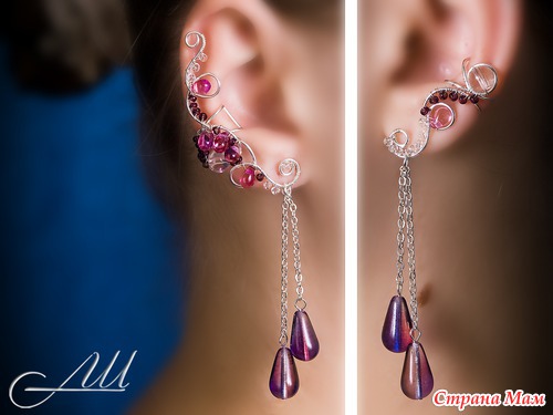 Два асимметричных каффа с подвесками каплями. Проколов не требуется. Материалы: Посеребрённая немецкая проволока, стеклянные чешские бусины, бисер, цепочки Размер: каффы - 5 см и 3,5 см, длина подвесок - 5,5 см На мне смотрится так: Читать полностью