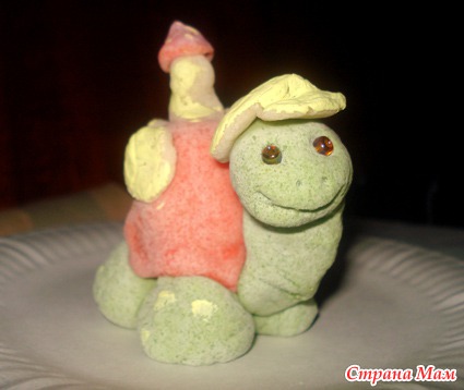 Увидела в интернете как делать черепашку из пластика и решила с детьми слепить ее из соленого теста.
