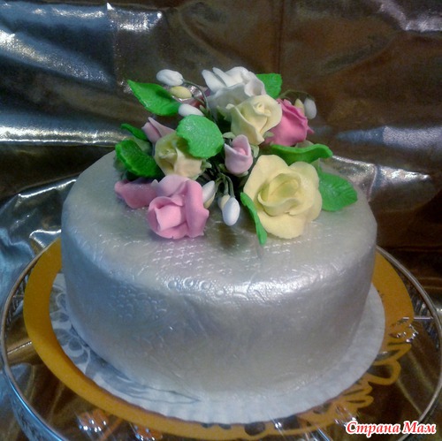 Шоколад на кипятке, крем заварной, мастика для букета - желатиновая, на обтяжку-молочная. тут фото побольше https://www.stranamam.ru/album/3575439/, опять на мобильник фотографировала.