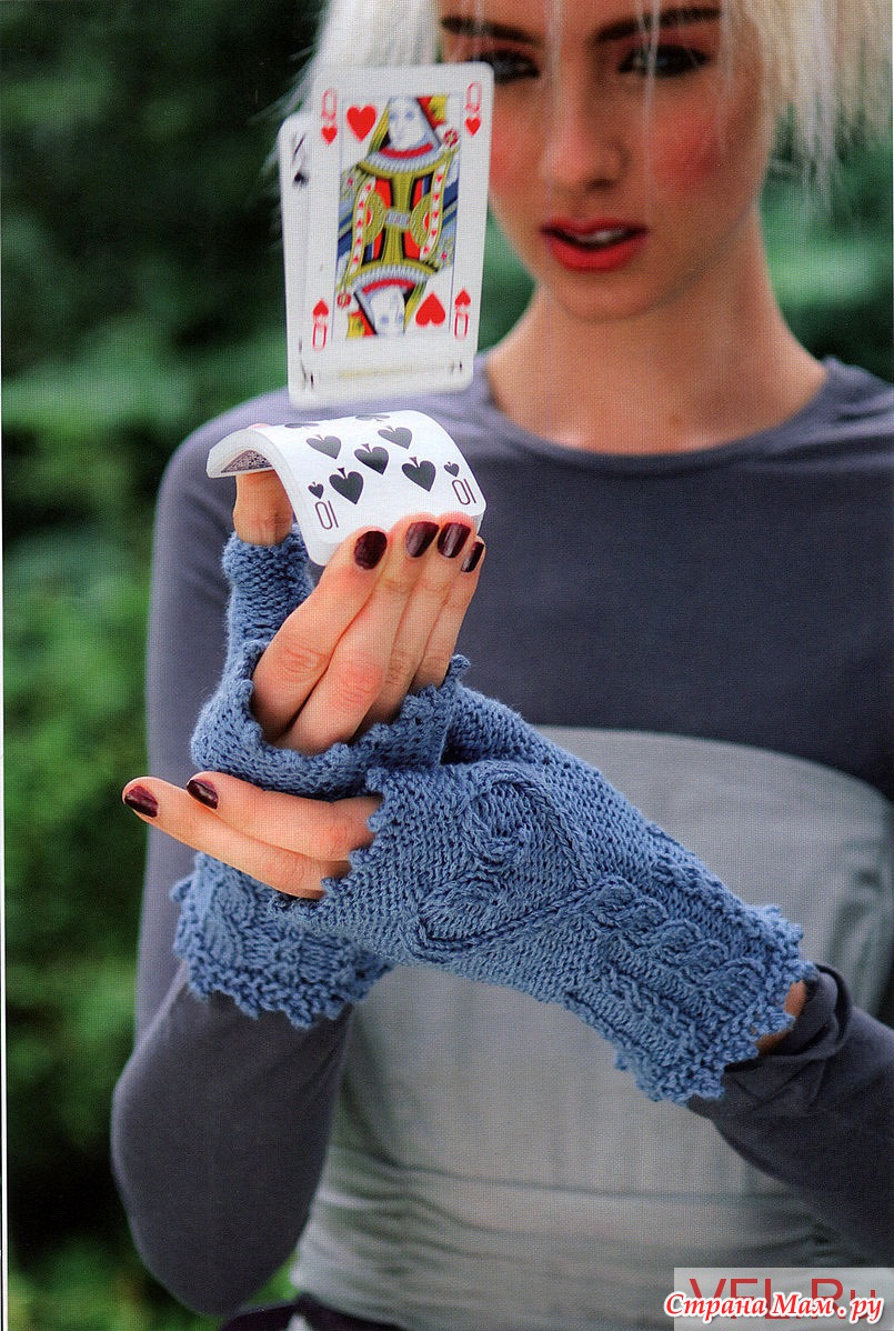 Связала для подруги митенки, навеяна идея из журнала. Вязала на спицах 2,5 пряжа Alize 100% шерсть, 400м/ 100гр, ушло половина мотка. Митенки получились плотненькие и очень теплые, само то на холода. Оригинал митенек прилагается!