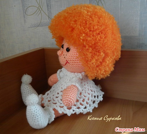 Ангел-вдохновитель, правда без крыльев. Вязала нитками Лотос акрил, волосы акрил Baby. Стоять не может, только сидит. Высота ангелочка сидя 18 см. Схему ангела брала вот здесь http://amigurumi.com.ua/pattern/37-dlya-opitnih/139-angel-vdohnovitel